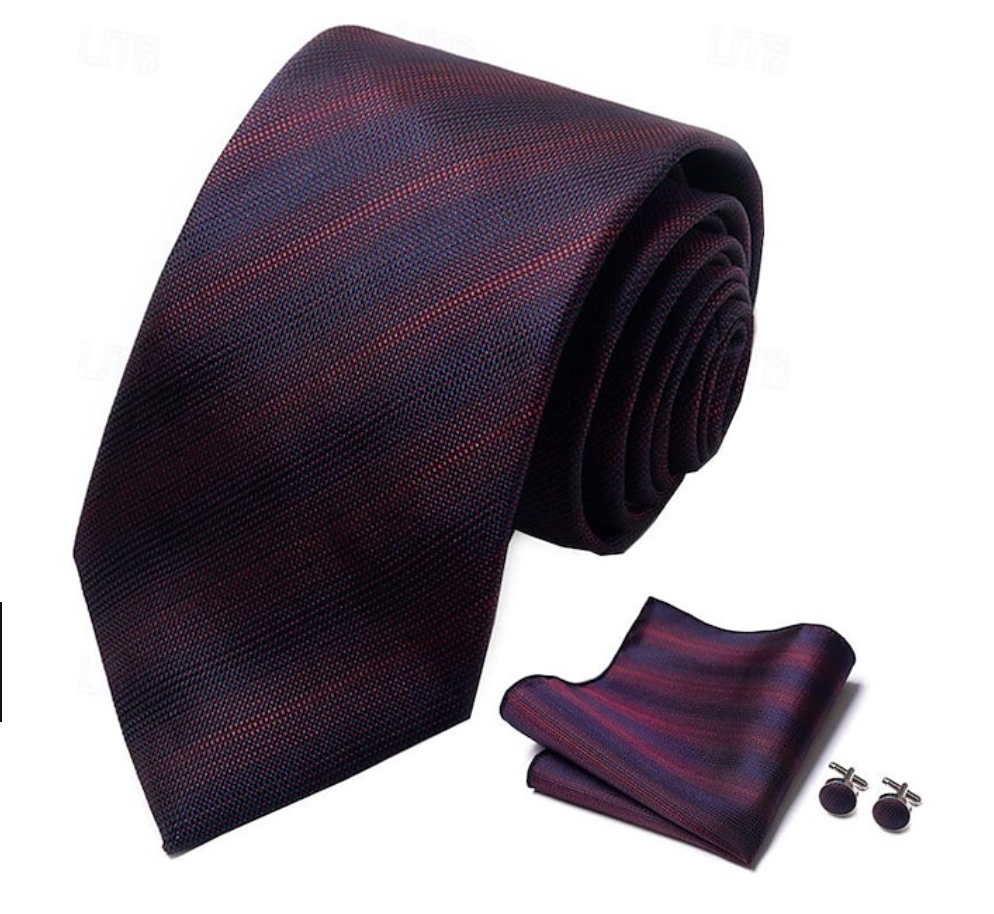 Ce pack comprend également un mouchoir assorti ainsi que des boutons de manchette, permettant de créer une tenue complète et parfaitement coordonnée.